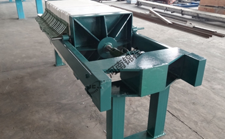 (1)機架部分:機架構(gòu)成壓濾機的基礎,用以支撐過濾機構(gòu)、連接其它部件。它主要由止推板、壓緊板、壓緊部分和主梁組成。