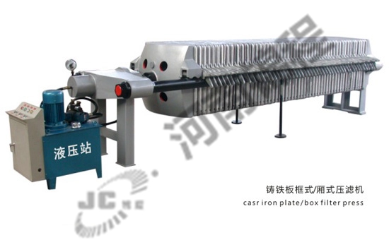液壓部分:液壓部分是驅(qū)動壓緊板壓緊或松開濾板的動力裝置,配置了柱塞泵及各種控制閥。