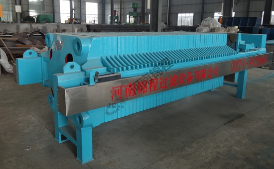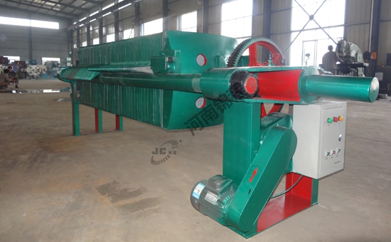 與板框壓濾機類似,不同之處在于濾板兩側(cè)凹進,每兩塊濾板組合成一廂形濾室,省去濾框,濾板中心有一圓孔。懸浮液由此流入各濾室。這種過濾機適用于需要在較高壓力下過濾而濾渣不需要洗滌的懸浮液。1采用自動液壓裝置作為壓緊、松開濾板的自動機構(gòu),并用電接點壓力表實現(xiàn)自動保壓。2采用電液一體自動控制拉板,實現(xiàn)自動推拉濾板的動作。3機架全部采用高強度的鋼焊合件,機架強度高,結(jié)構(gòu)穩(wěn)定,使用壽命長,足以承受壓濾引起的強大壓力。4該機有PLC自動控制及繼電器控制等多種配置,操作面板簡單安全,并配有多種安全裝置,確保操作人員安全。5增強聚丙烯濾板采用多項專利技術(shù)模壓而成。表面平整光滑,強度高,重量輕,耐酸堿,耐腐蝕,無毒無味。